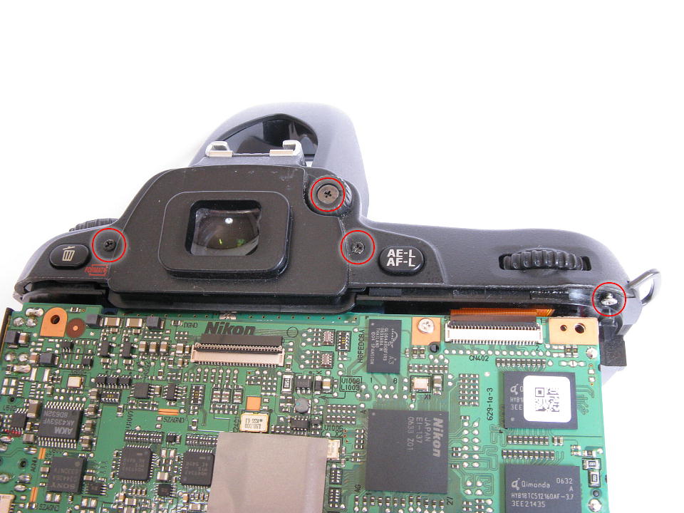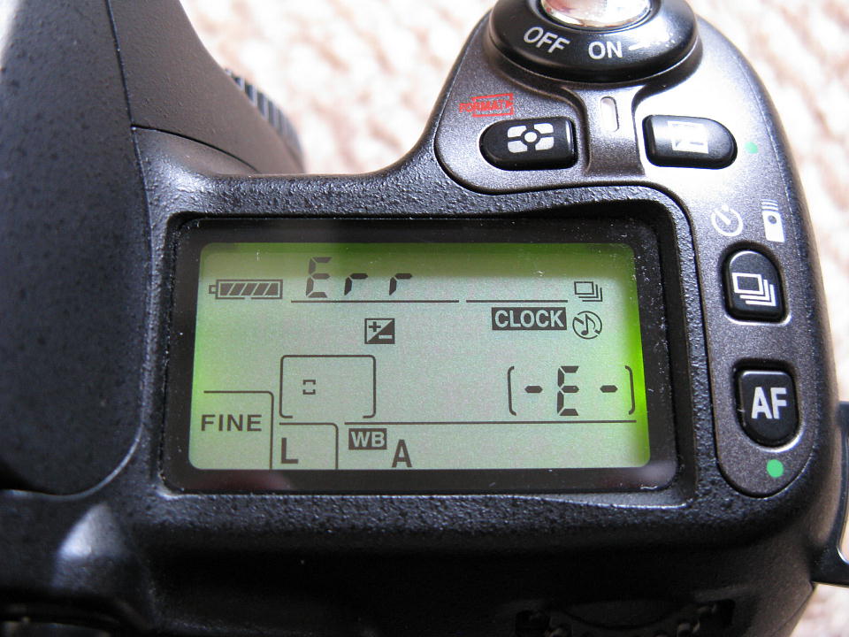 | そして、「本番」として分解対象にしたのは、 AFが効かないというSIGMAのジャンクレンズとセットで2,200円だった、 今回の4台のうちでは1番高かったヤツだ。バッテリーは付いていなかった。 グリップ部分の樹脂が加水分解してベトベトになっている上、 各部にホコリや汚れが多く付いているかなりばっちい個体だ。 手持ちのバッテリーを入れ、電源を入れるとこのように表示される。 余談だが「AFが効かないSIGMAのジャンクレンズ」は、 D810などに装着してみたらどの機種でもAFが効いたので、 これから分解するこのボディのAF機構が故障していると思われる。 ちなみに、この他の2台はどちらもボディのみで、 バッテリーなしで1,200円と、バッテリー付きで1,500円だった。 |