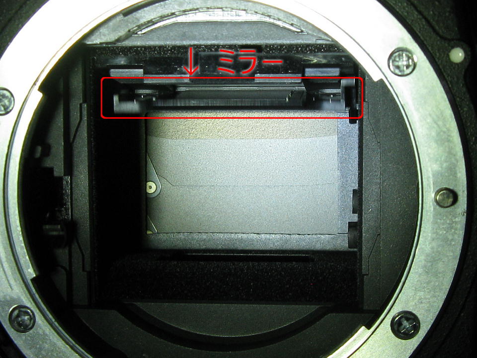 | シャッターボタンを押すとミラーが上下に作動するが、 シャッター幕は開かない。 写真は、ミラーが上がってシャッター幕が見えたときのもの。 この様子の約7秒の動画はこちら。 ミラーの動きは映っていますが、幕までは確認できません。すみません。 ネット情報では、このような故障の場合は、 シャッターユニットのギア部品に不具合が起きている可能性が高いようだ。 |
