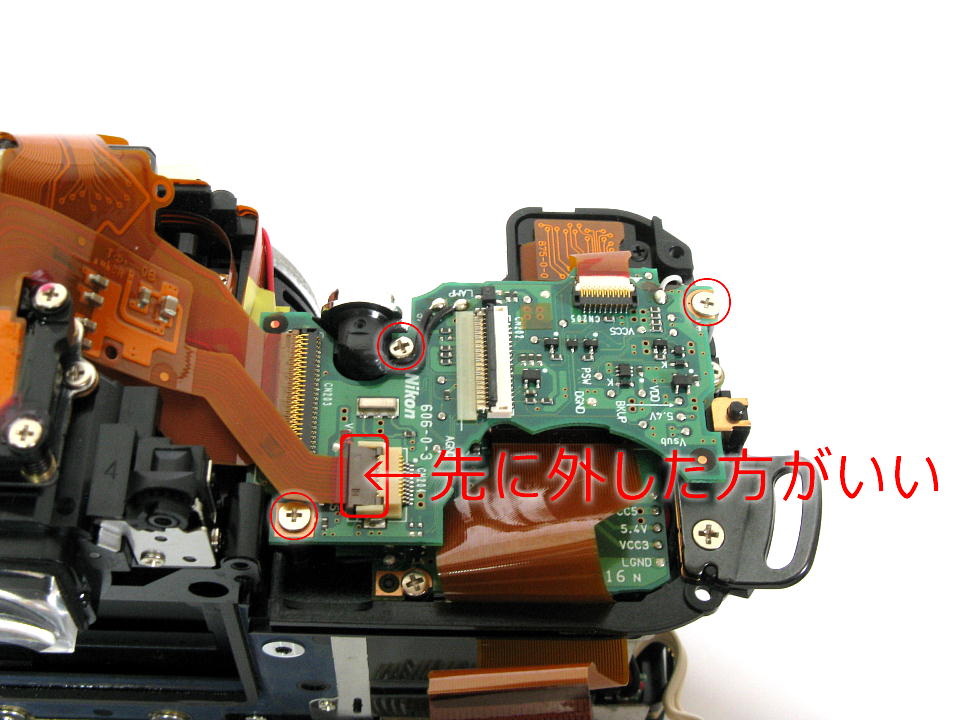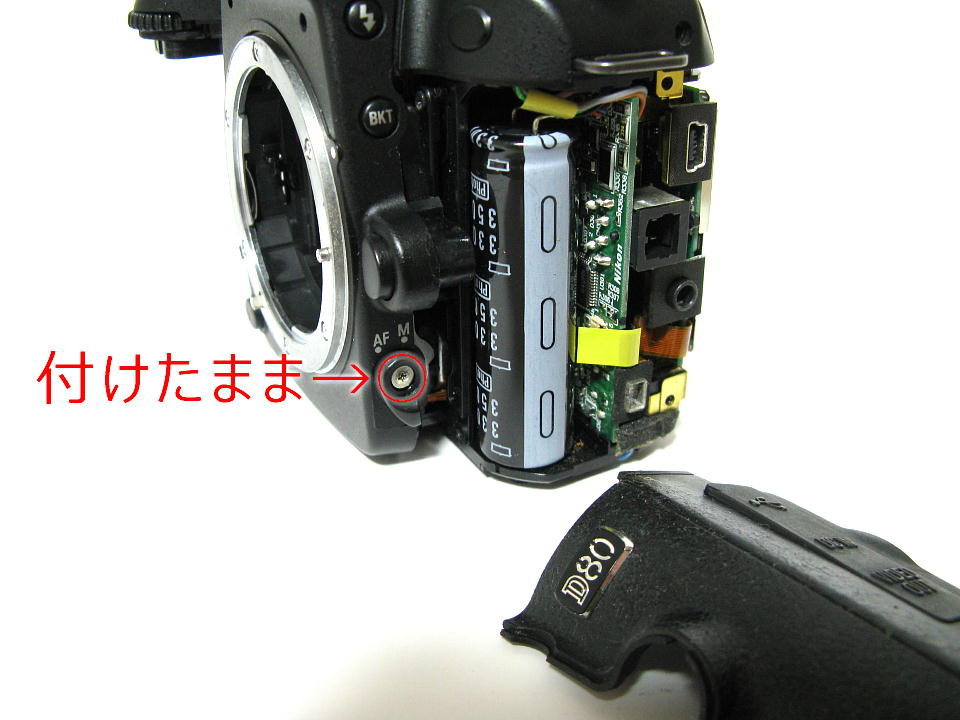 ※D80の分解に限らず、写真と説明文がある「作業系」のブログやWEBページの中には、説明文が上下どっちの写真についてのものなのかがヒジョーに分かりにくいものがたくさんあるのは、