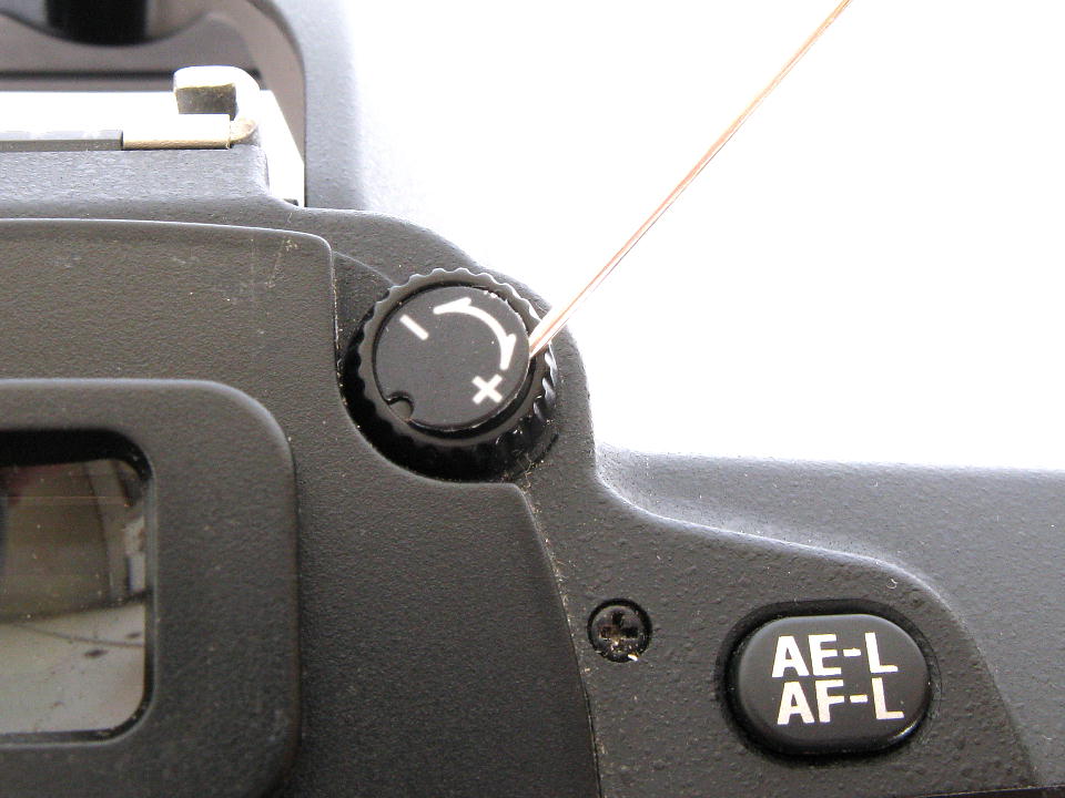 | 【ひと段落ついでの余談】 ベタついたグリップ部を外して清掃したい場合や良品と取り替える場合に、 なにも「フォーカスモードダイヤル」を傷つけてまでして外さなくても、 グリップ部だけをうまく外せれば目隠し蓋などにも傷を付けずに済むんじゃないかと思い、試しにやってみた。 |