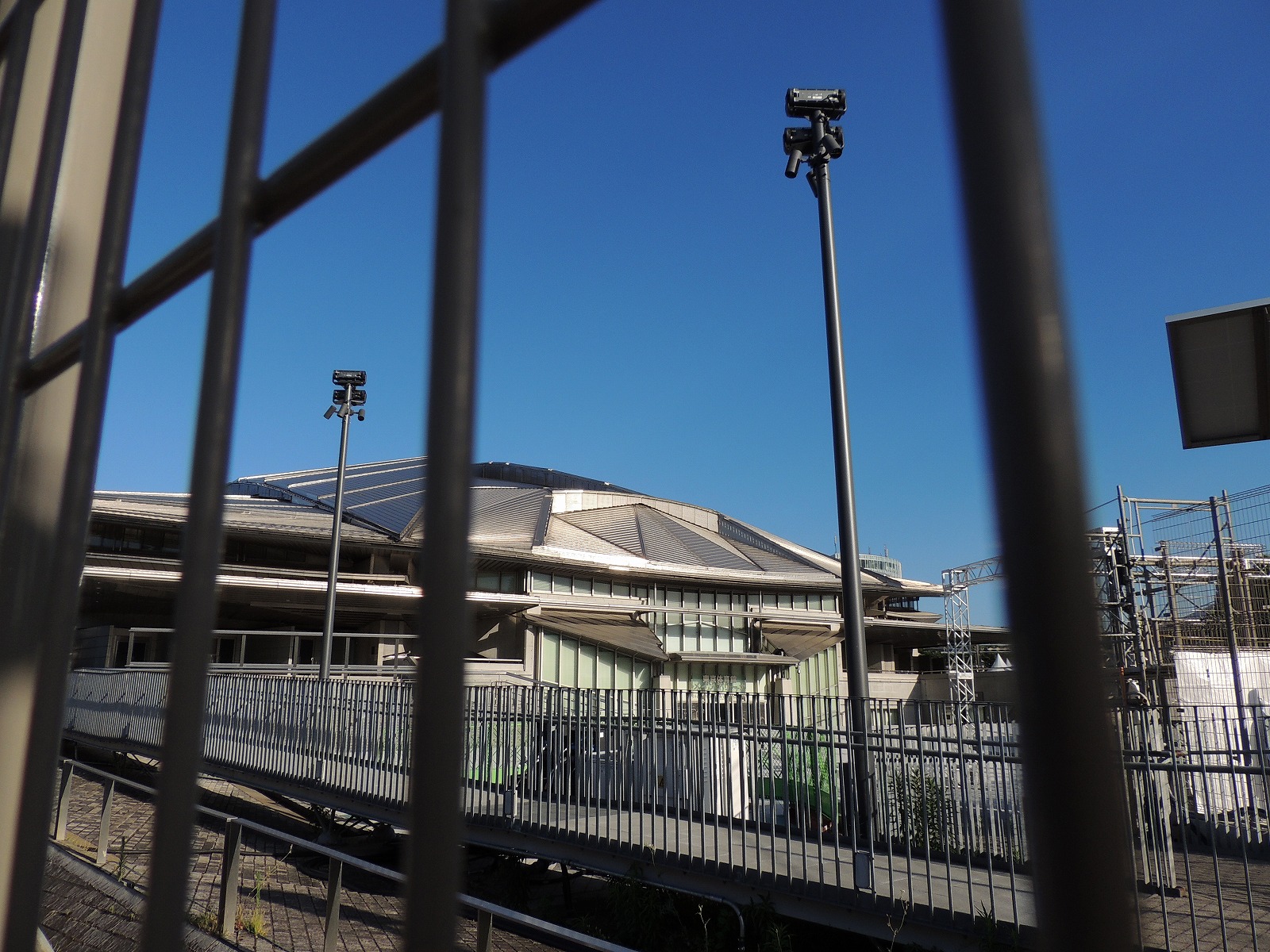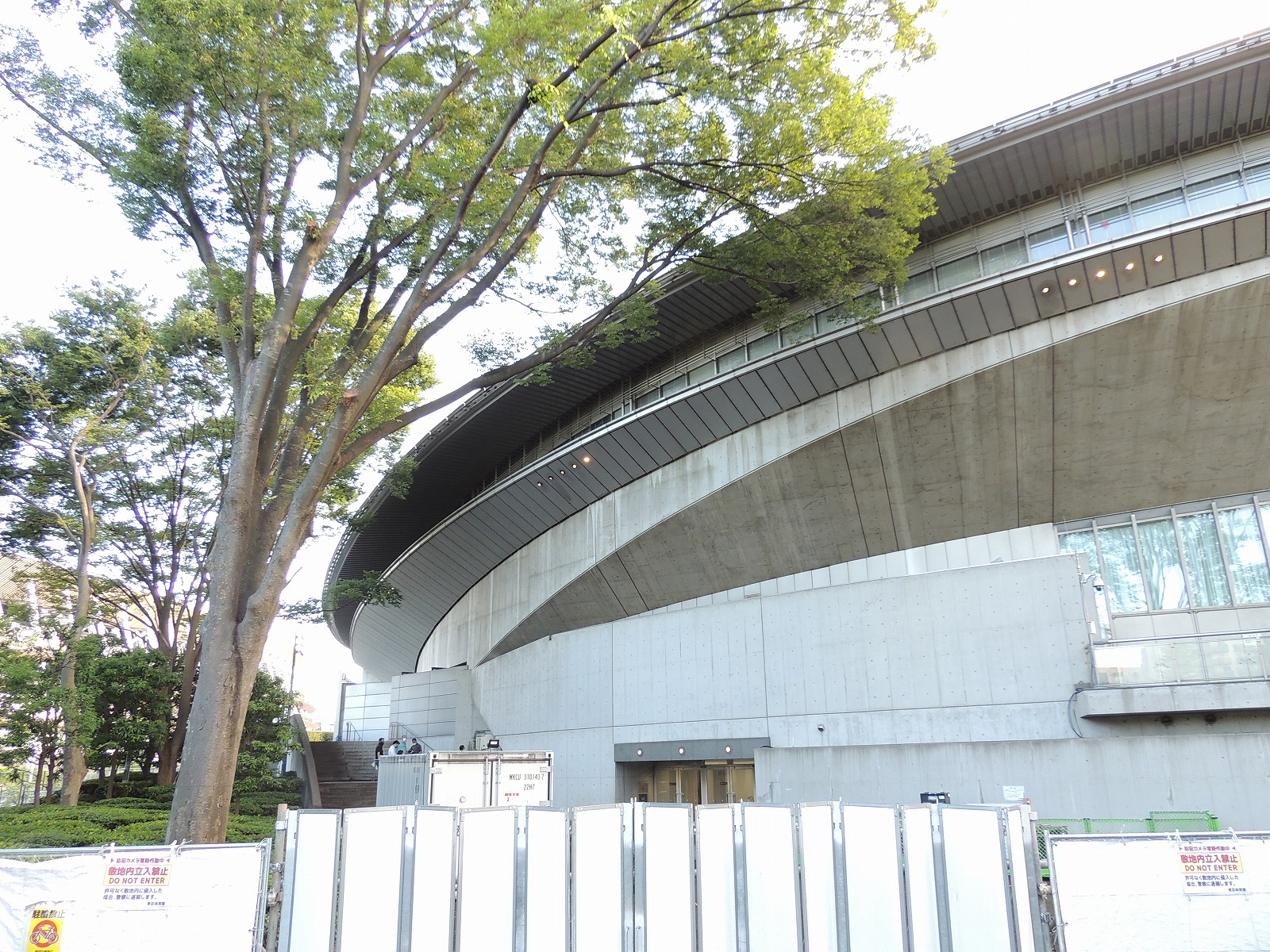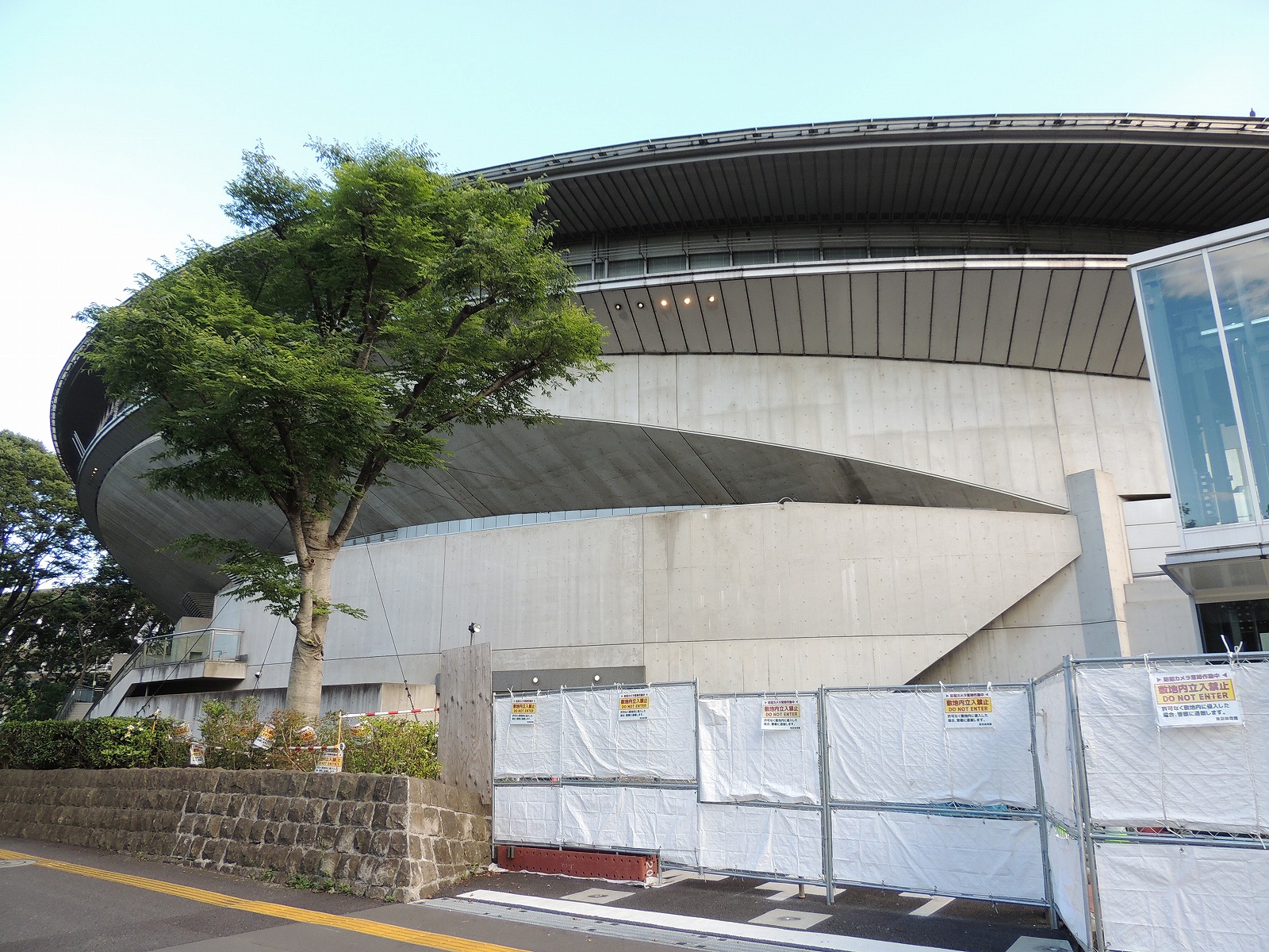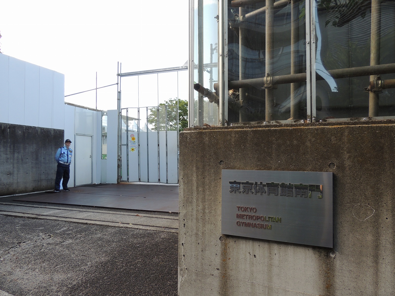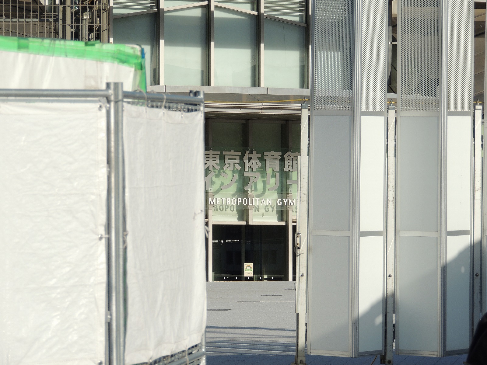 | 工事のカベの隙間から、辛うじて「東京体育館」のネームが見えた。 |