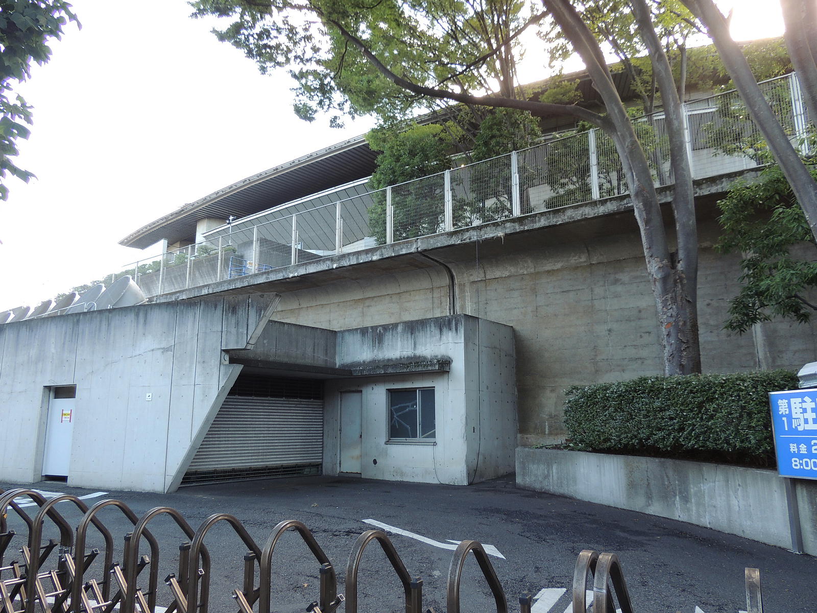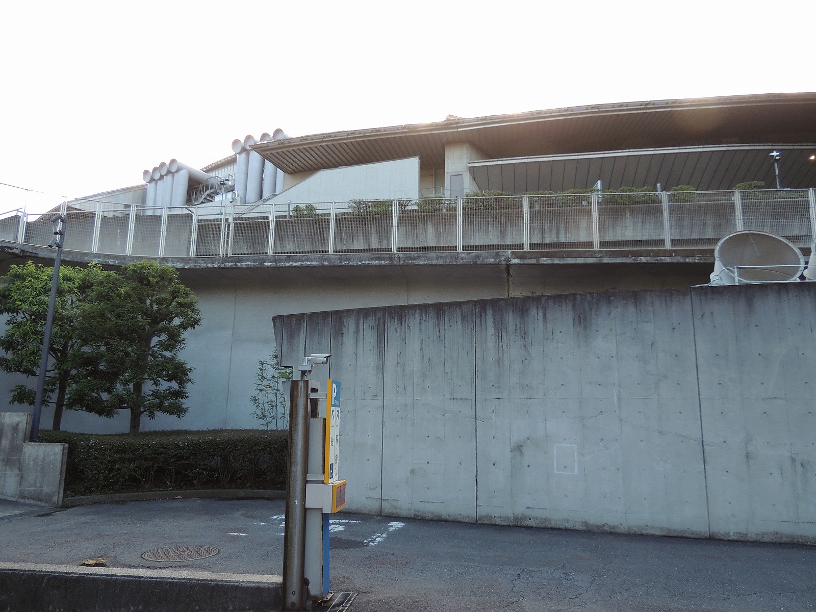 | 駐車場の入口。 コンクリの壁で固められている。 |