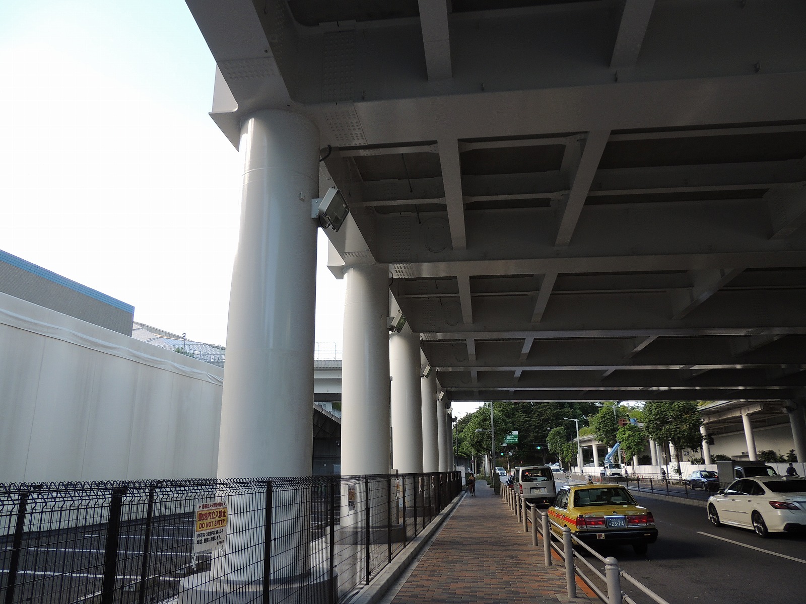 | 上の写真からちょっとだけ南下して撮影。 俺が撮影するまでは写真右に写っている警備員くんがさんざん駄弁っていたのに、 俺がカメラを構えたのに気付いて、「シゴト」モードに入りやがった(笑)。 |