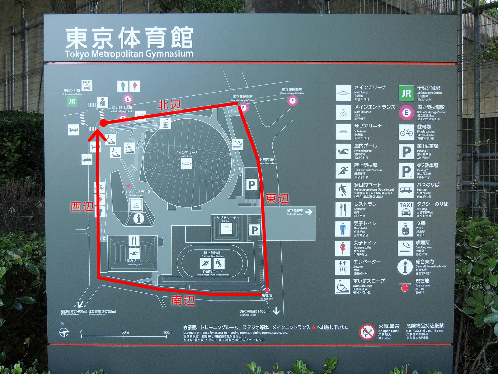 | 東京体育館を一周して北西角に戻ってきた。 |