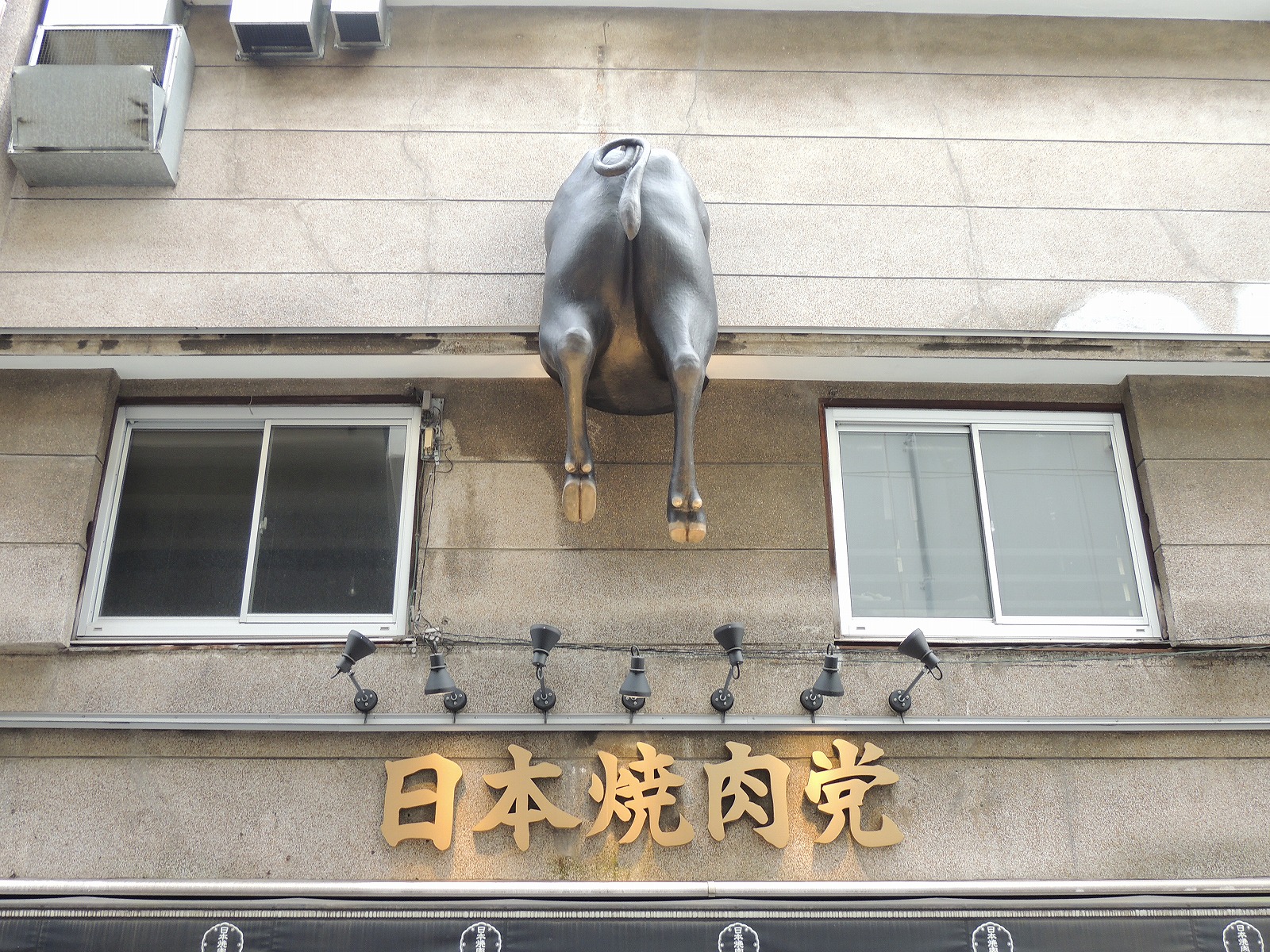 | すると、牛さんのおケツがこんにちは。 出口を出たと思っても、もし牛のケツではなくてラーメン屋の前だったら、それは間違い。 西口を出て無意識に左に進んじゃったんだな。 右だよ右。 |