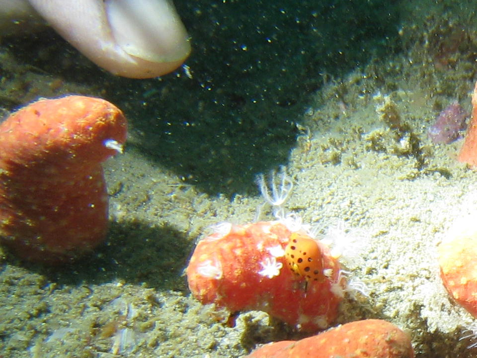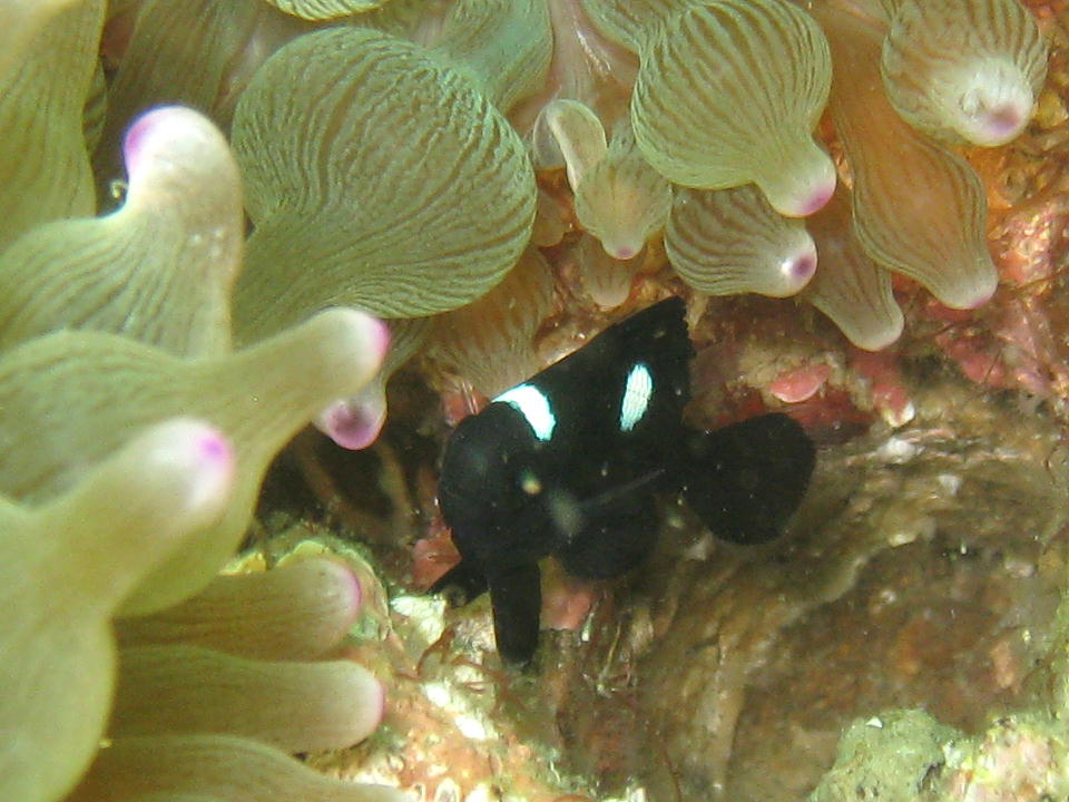 | オーナーガイドの魚地さんが指さしているのは、ちっこいクロマルケボリ。 今回は定規を持ってきていないので、 大きさが分かりやすいようにオーナーさんの指先を入れて撮影した。 ちなみに、今回の撮影機材はいつもとは違い、 Canon IXY DIGITAL 910IS 2008年製 800万画素 を使っている。 使い慣れないカメラのため、満足のいく撮影はサッパリできなかったが、 まあ、本来はシゴトで来ているんだから、 ハウジングを含めても容積のかなり小さいこのカメラにせざるを得なかった。 |