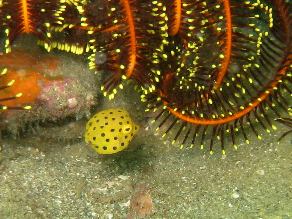 | うぉぉぉぉぉ~っ! 俺が大好きなミナミハコフグ(yg)じゃね~かっ! この個体で1cmほど。 オーナーさんによれば、これでも大きくなっちゃった方だ、とのこと。 あ~、いつものカメラならもっとうまく撮れるのに…。 |