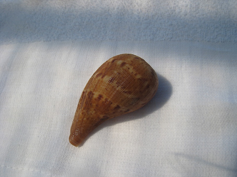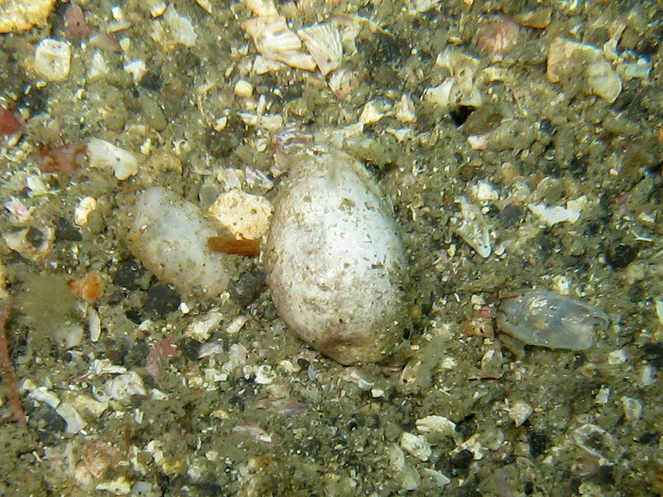 | -16.9mのタカラガイ。 貝殻が白いので、表面がすっかりザラザラになっていると思って触ってみたら、 意外にもつるつる感がグローブ越しに伝わってきたので、念のために確保してきた。 貝殻が乾いてから観察してみたら、口部以外には白色の上にエナメルがあった。 ってことは、貝殻の色がそもそも白い種類か? Bクラス程度の個体だった。 名前は今後確認する。 |
