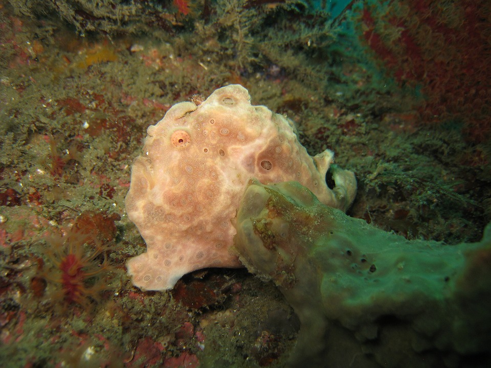 | オオモンカエルアンコウ。 手前の物体はどうにも避けられず。 |