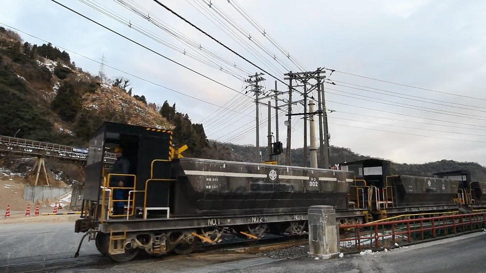 | 積み込みが終わると発車していく。 約48秒の動画はこちら。 |