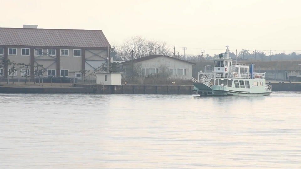 | では、どんな感じなのか、越の潟の出航シーンをご覧ください。 2往復目の出航時の、約01分30秒の動画はこちら。 |