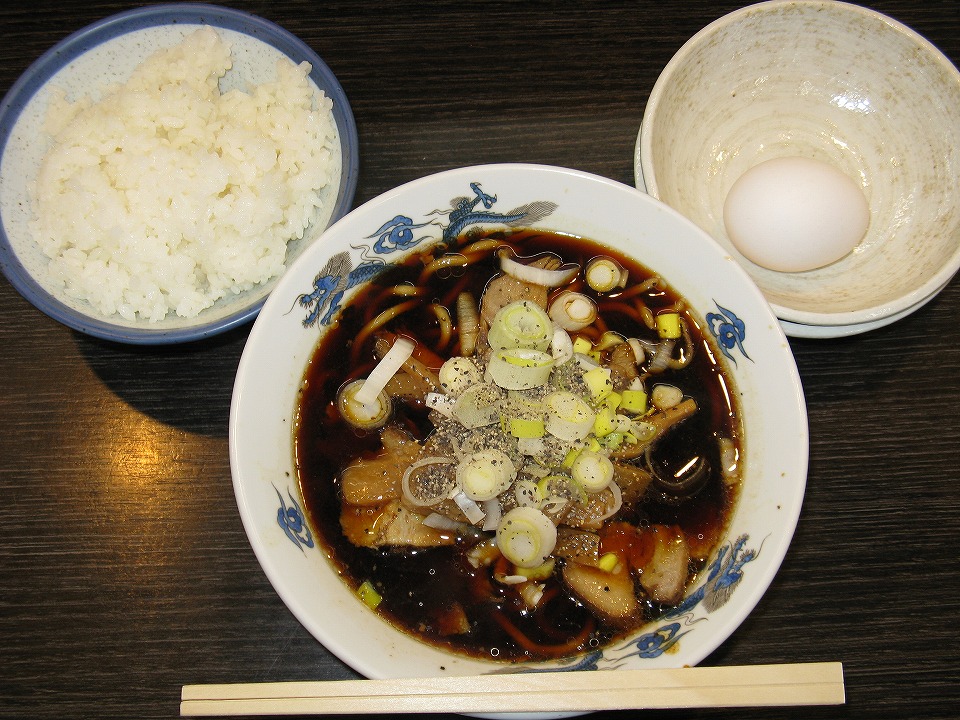 | 砺波から国道359号で富山市に入り、「西町大喜」(にしちょうたいき)二口店で遅昼。 中華そば(並)+ライス1,000円ナリと、生玉子70円ナリ。 中華そばは、相変わらずクソしょっぺー。 特にメンマは、塩漬けのまんまじゃね~の?と思うほどだ。1本喰っただけであとは残した。 そしてこれは前回もちょっと思ったことだが、冷静に考えて、ラーメンとして「旨い」のかな~。 今回で確信に近付いた気がする。 |