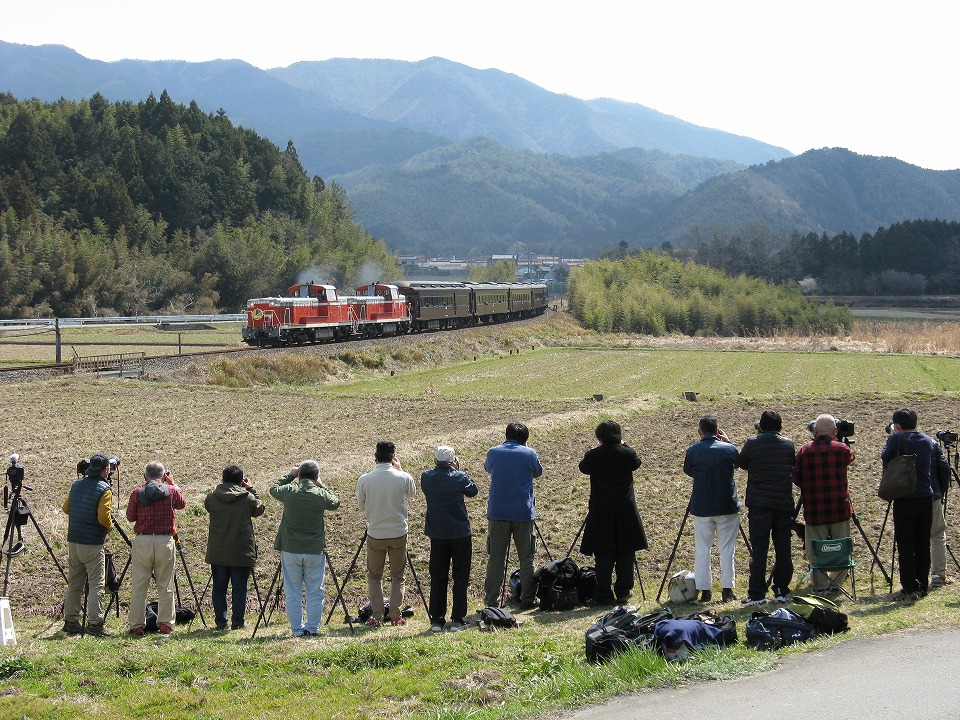 | 今日は平日でしかも曇りで北アルプスが見えないということもあってか、沿線に撮りテツはそれほど多くなかった。 でも、「キュンパス」期間中なので、それを使った乗りテツが結構いたな~。 |