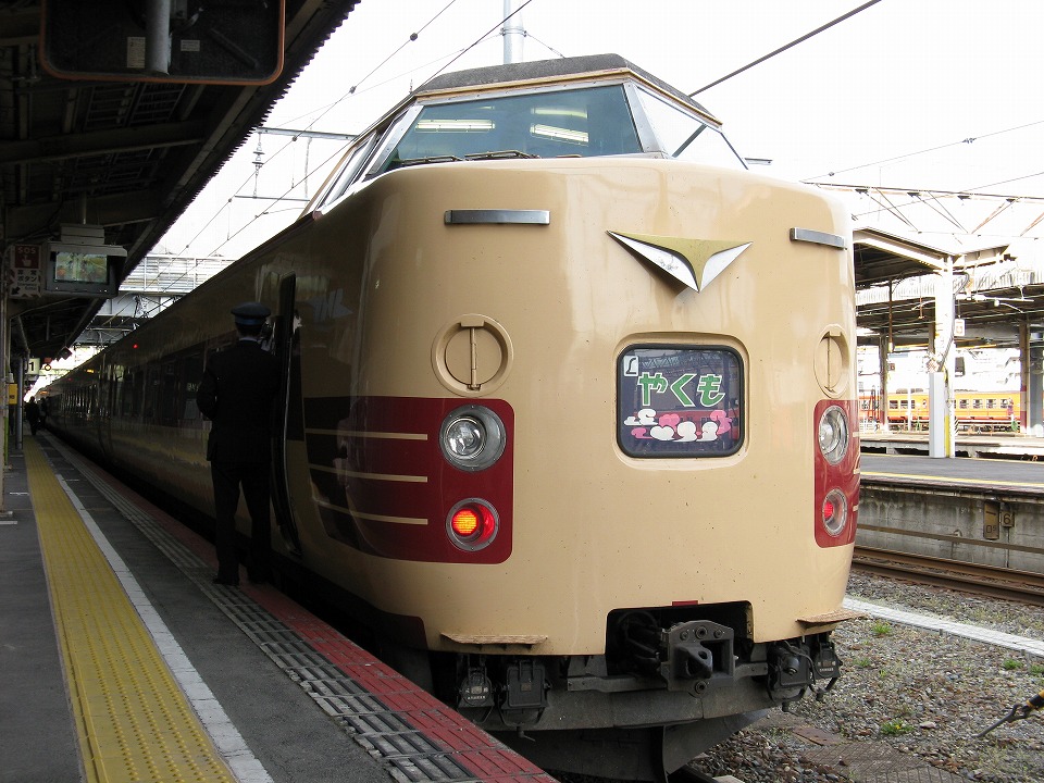 | 引退を前に、国鉄色でリバイバルした381系「やくも」。写真は「やくも24号」。 2022(令和04)年の登場から2024(令和06)年の運行終了まで、 撮影や乗車で10回ぐらい信州~山陰を往復したっけな~。 これから、「サンライズ出雲」で東京に出て、「あずさ5号」に繋ぐ。 |