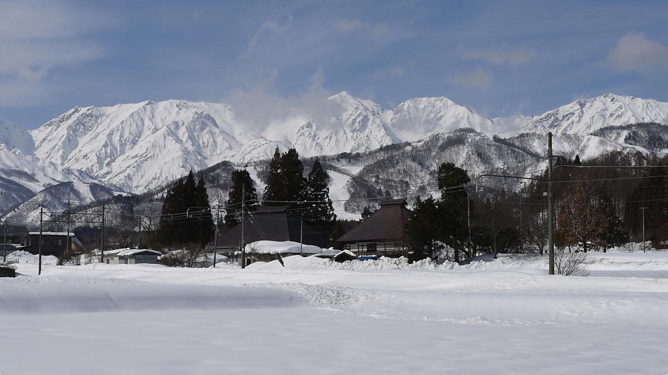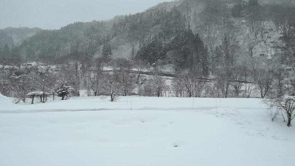 | 小谷村に入った。雪深い風景の約1分の動画はこちら。 |