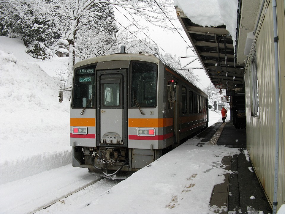 | (写真や動画はないが、5334Mは途中の白馬から国内外の大勢のスキー客が乗ってきた。 そんな中、白馬の次の飯盛で客1人がホームにいて5334Mに乗ろうとしたものの、 ワンマン列車への乗車方法が分からず右往左往している間に、 この客を残して5334Mは発車してしまった。 俺が乗っていた2両目の車内はざわめいたが、もう発車して加速に入っていたので、 俺が先頭車に行って運転士に声がけすることはできず、そのままになってしまった。 信濃大町で降車時にこの件を運転士に伝えたが「客がいたことは知らなかった」と言った。 そこで俺は、後日、正式文書をJR東日本長野支社長宛送付したが、なしのつぶてで、 報道発表もなされなかった。 こんなんでいいのか? JR東日本長野支社。 |