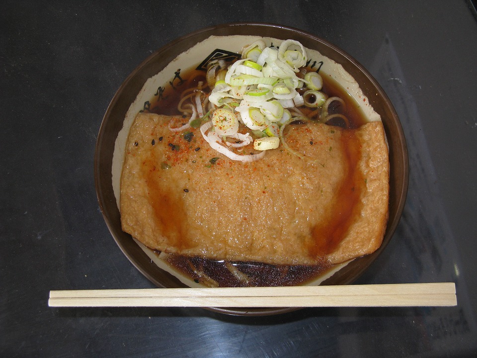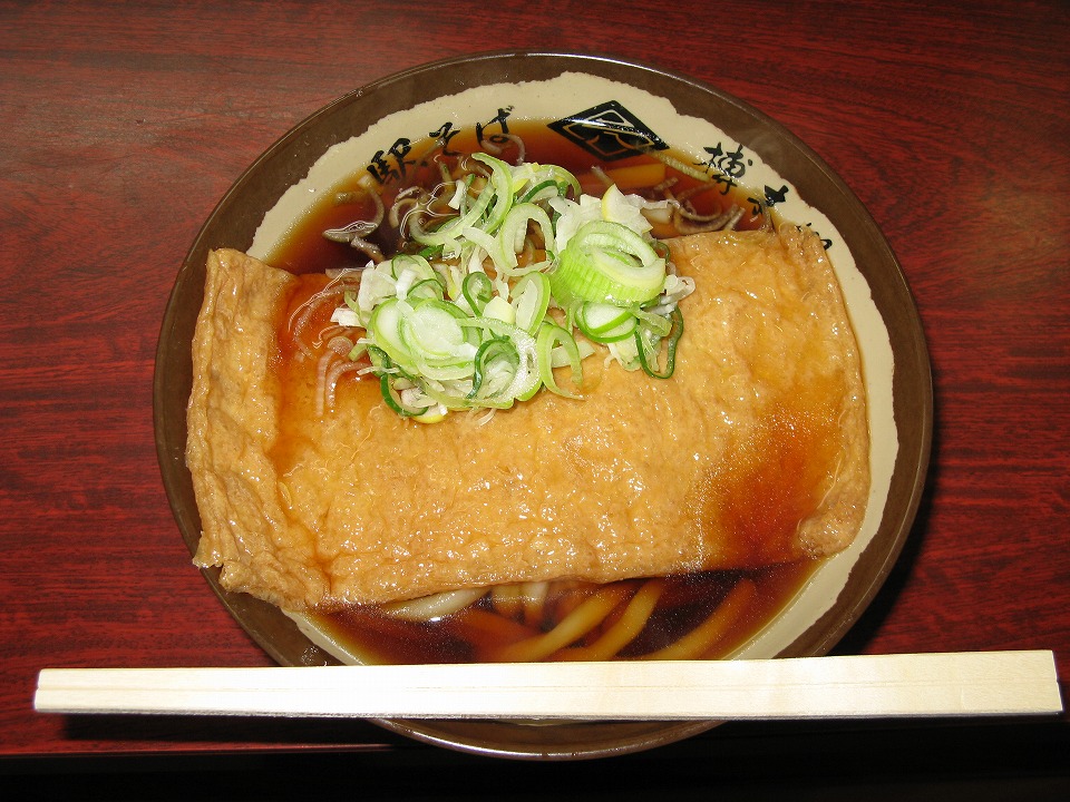 | 信濃大町に着き、駅そばできつねうどん520円ナリをすする。 南小谷からの鈍行の女性運転士もここでハラごしらえしてたよ。 |