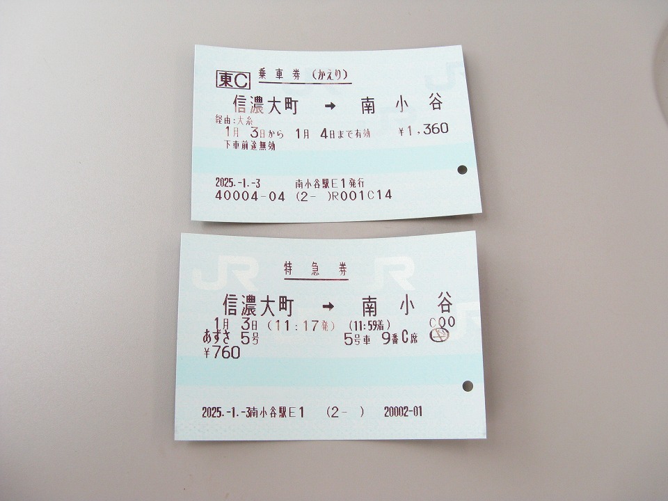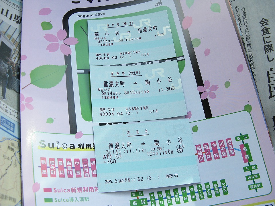 | まずは、鈍行で信濃大町に行っておく。 乗車券は、1年後の2026/03に発売終了がアナウンスされている往復乗車券にしたよ。 |