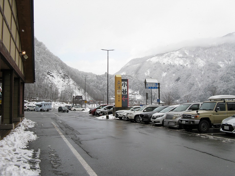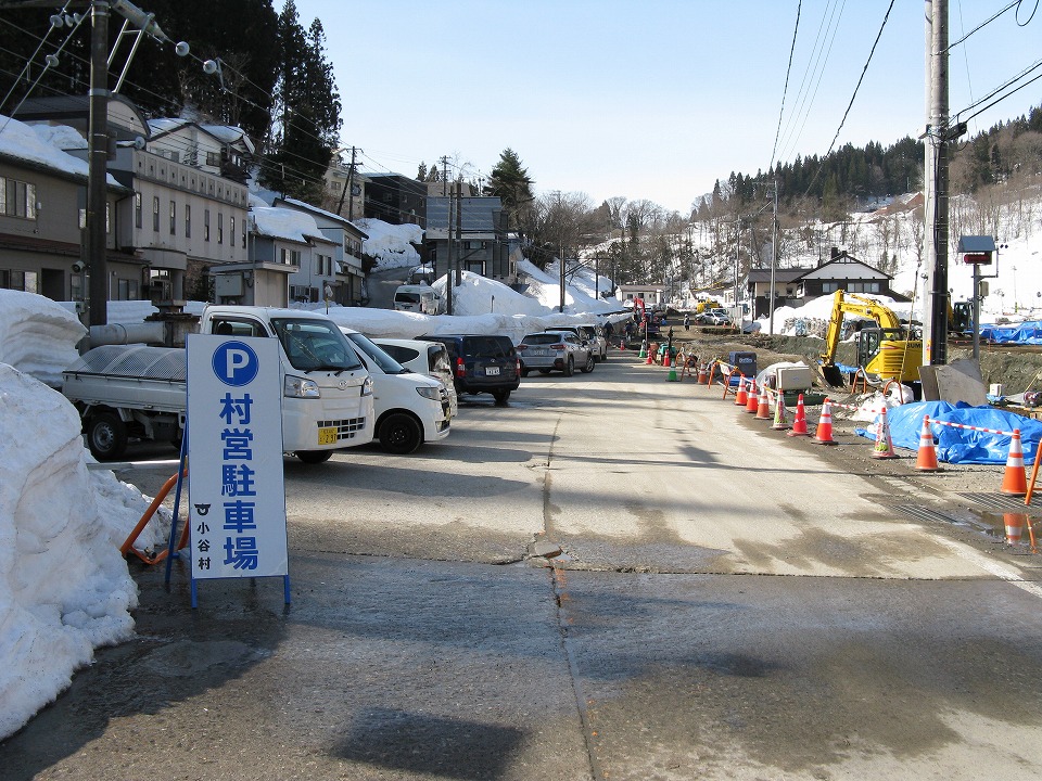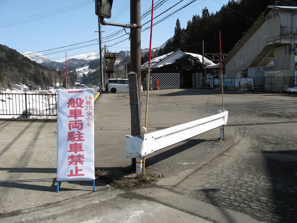 | いよいよ南小谷乗り入れ最終日。 南小谷駅から歩いてすぐのところの国道147号の旧の路面部分が工事のお陰?で村営駐車場になっている。 朝、早めに到着して、しっかりと場所を確保した。 |