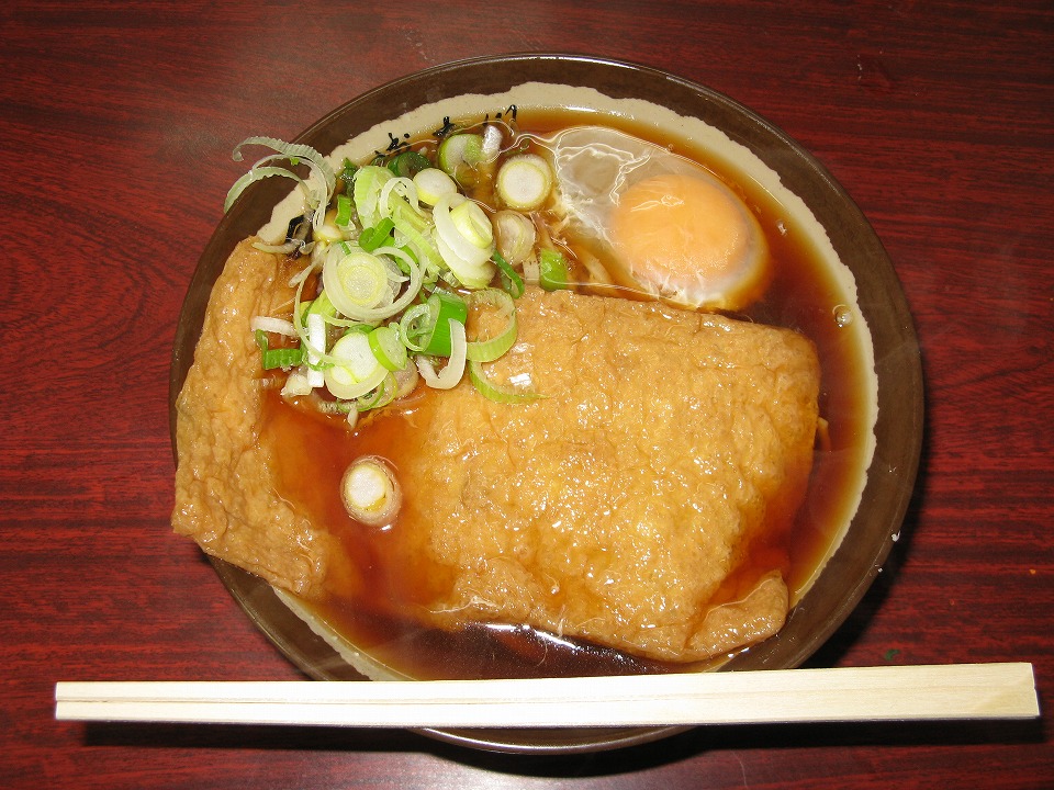 | 信濃大町駅には嬉しいことに駅そばがある。 さっき、鈍行でサンドイッチなどを喰ったんだが、駅そば愛好家としては喰わずに入られない。 駅そばとはいえ、うどんも扱っているので、きつねうどん520円ナリにした。 |