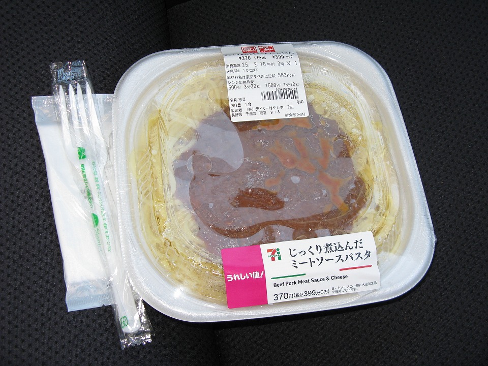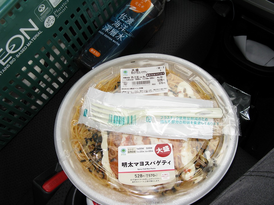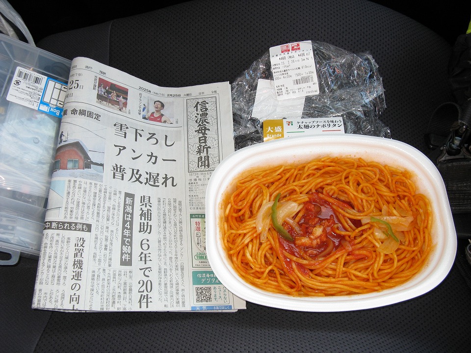 | 南小谷から信濃森上駅付近にクルマで戻り、 イレブン屋のミートソースパスタ399円ナリで昼メシ。 |