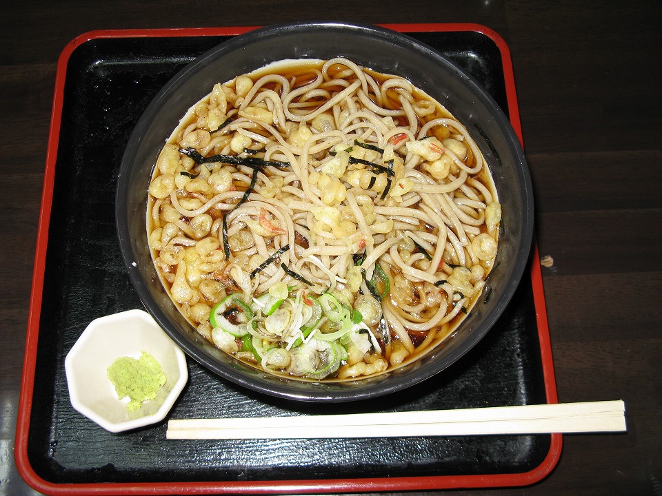 | ひとまず南小谷駅近くの村営Pに駐車して、鈍行で信濃大町に出た。 お馴染みの駅そばで月見そば450円ナリ+きつね130円ナリでハラごしらえ。 |