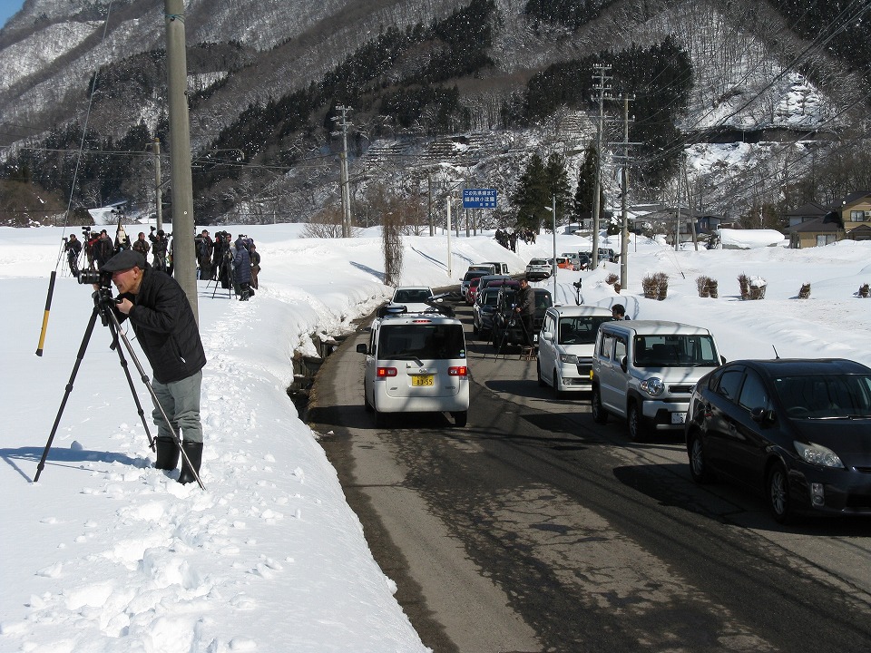 | 撮りテツは、こんなでした~(笑)。 俺が道に三脚を立てたら、撮りテツの1人から「どういう構図ですか?」と聞かれたので、 「あえて、撮りテツを一杯入れて、山とあずさと。」と答えたら「おもしろいですね~」だって。 確かに、こんなアングルは、これまでのアドバンテージがなければ絶対にやらないよね。わはは。 「あずさ5号」が通過する時の約20秒の動画はこちら。 今日はこれから新潟に移動しないといけないので、これでおしまい。 糸魚川に出て高速に乗るのだ…。 |