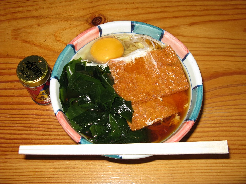 | 今日は松本に出張だ。 まずは、長野駅の「ナカジマ会館」で行ってきますの一杯をすする。 きつねわかめそば370円ナリ+たまご40円ナリ。 今時この値段は非常に良心的だと思う。 |