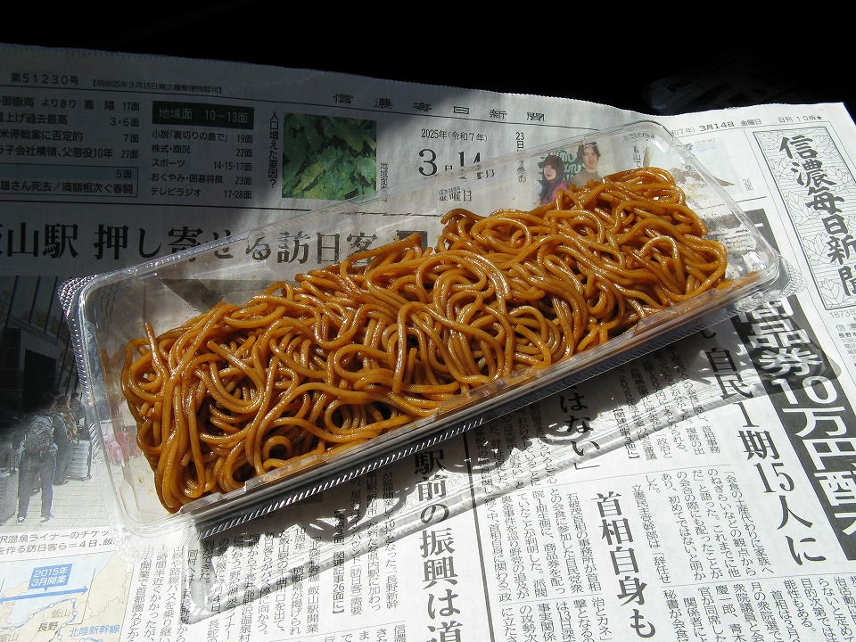 | 南小谷に着いたら、昼メシ(さっきのきつねうどんはなんだったんだよッ!)。 今回は、素やきそばだ(笑)。 |