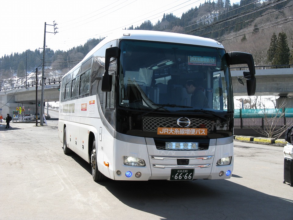 | 大糸線増便バスと銘打って「利用促進」を図っているが、 大糸北線のバス転換の布石に過ぎない、と俺は見ている。 |