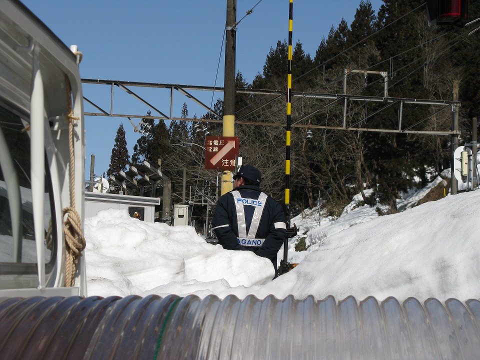 | お巡りさんが登場したゾ。 JR東日本か小谷村が警備を依頼したんだろうね。 テツは何をやらかすか分かんないからね。 |