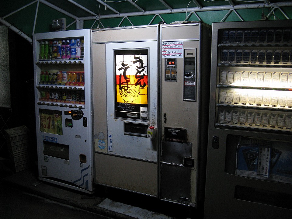 | さあ、山陰に向かうゾ。 今回も日本海側に出て北陸道経由で山陰に行くため、 上越に向かう途中、まずはお約束の「う・そ自販機」で行ってきますの一杯をすする。 |