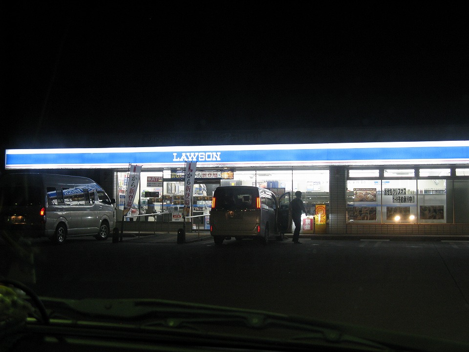 | 2023/11現在、綾部側から山陰に向けて走った終点である山陰近畿道の京丹後大宮I.C.で降りた。 ここんとこ毎月お世話になっている24h営業のG.S.で給油し、同じ敷地内にあるローソンでちょっと休憩。 事前の情報では、宮津天橋立~京丹後大宮が工事のため通行止めということだったが、工事が早く終わったのか通行できた。 その旨を後続の登山隊の同僚にメールで連絡した。 |