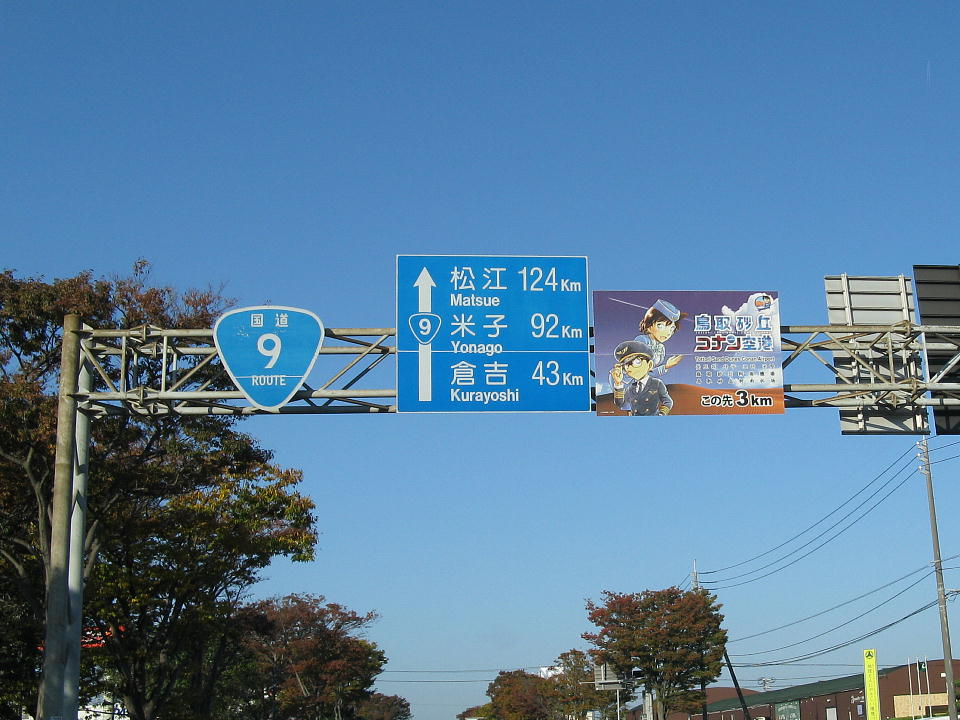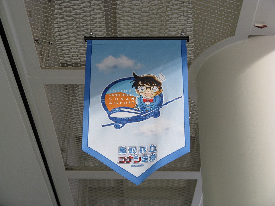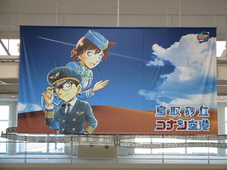 | 鳥取空港は愛称を「鳥取砂丘コナン空港」としている。 アニメ「名探偵コナン」の原作者である青山剛昌氏が鳥取県東伯郡大栄町(現:北栄町)の出身で、 その縁で鳥取空港をコナンだらけにしているよ。 |