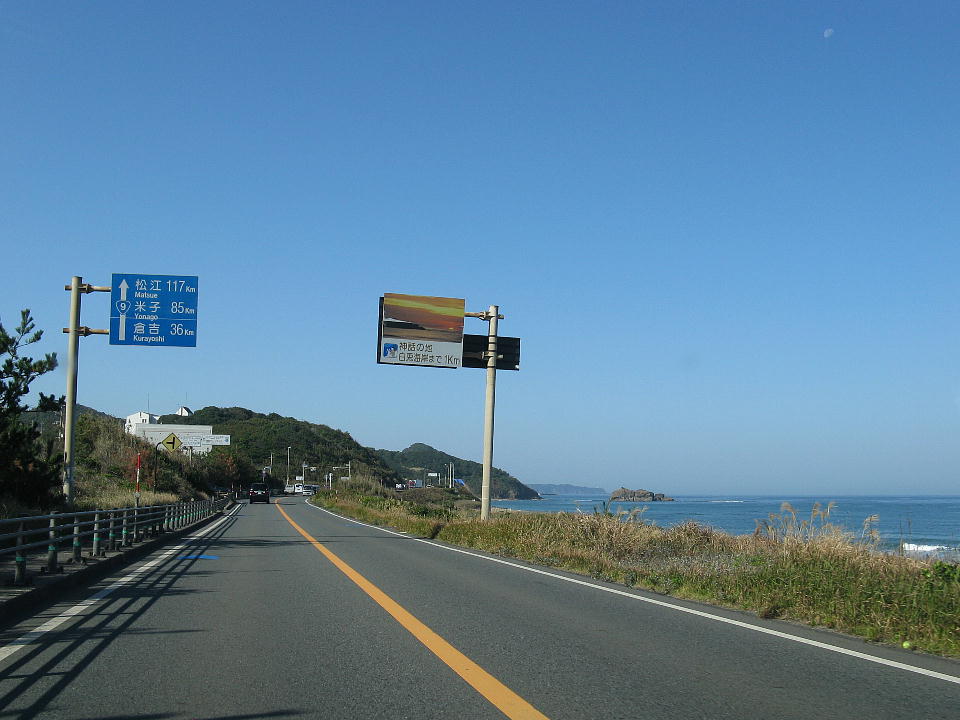 | 国道9号を米子に向かって走り出したら、すぐに県境を跨いで鳥取県に入る。 |