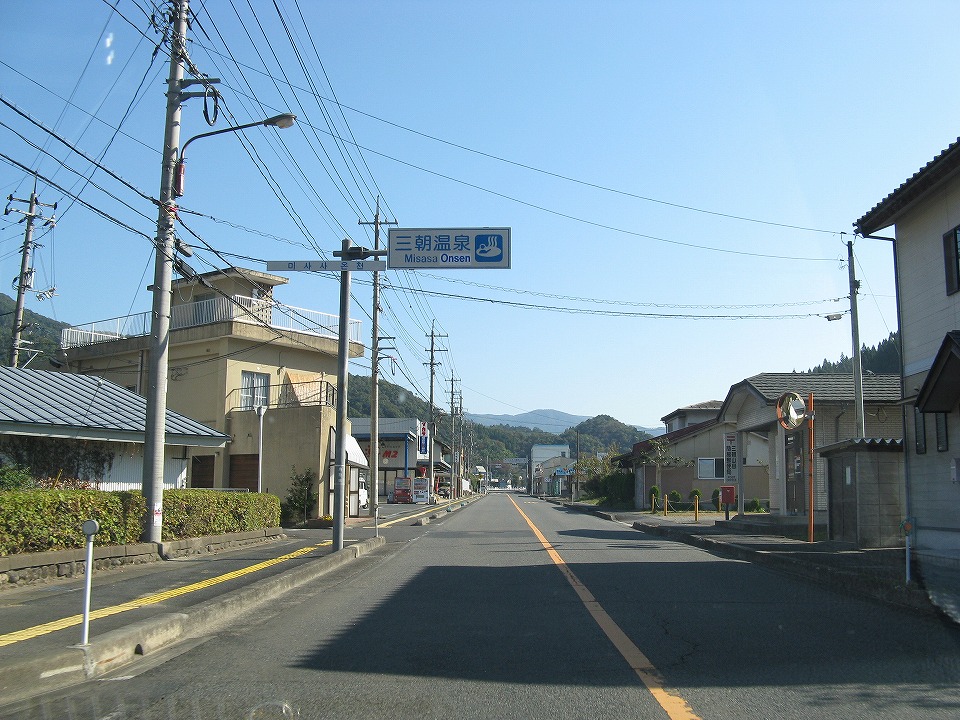 | 快走していた国道9号から湯梨浜町で南下し、倉吉市を通って三朝(みささ)町に来た。 ここで、三朝町産の「きぬむすめ」(コメ)をGETしたい。 |