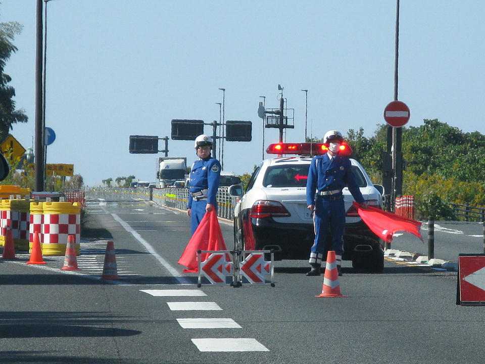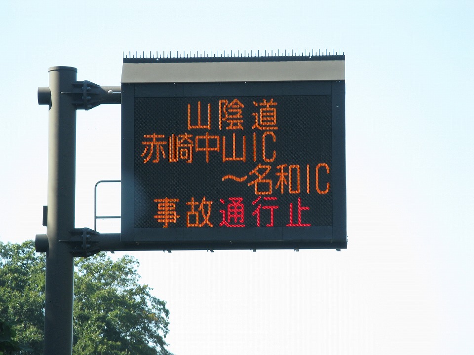 | さぁて、大山・米子方面まであとちょっと…と思いながら山陰道を走っていたら、 げげげ、事故で通行止めだと? |