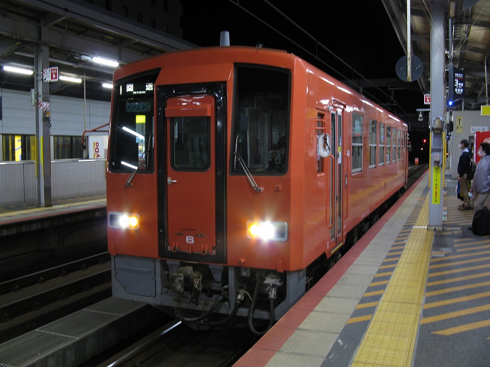 | 出雲市にはそのまま約30分遅れで到着した。 俺は一旦改札から出たが、すぐまたホームに戻り「サンライズ出雲」のシャワーカードを買う列に並んだ。 「並んだ」といっても幸い先頭だった。 「サンライズ出雲」の入線待ち中に、回送の単行のキハ120がやって来た。 たまたま首都圏色車だったので、一応記録用に撮影した。 オリジナルの塗装のキハ120には何の興味も湧かないが、 この首都圏色だと「少しはマシかな」と思うのが勝手だね。 |