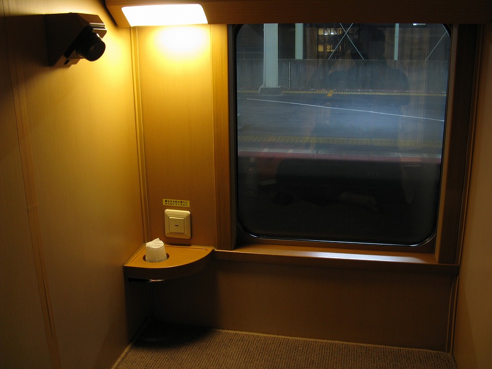 | 寝台料金は要らず、指定席特急料金だけで乗車できる「ノビノビ座席」。 「座席」といってもカーペット敷きになっていて、横になることができる。 カップ、シーツ、掛け布団は付いている。 隣の区画とは、上半身分ぐらいは仕切られているので、ある程度のプライバシーは確保できる。 |