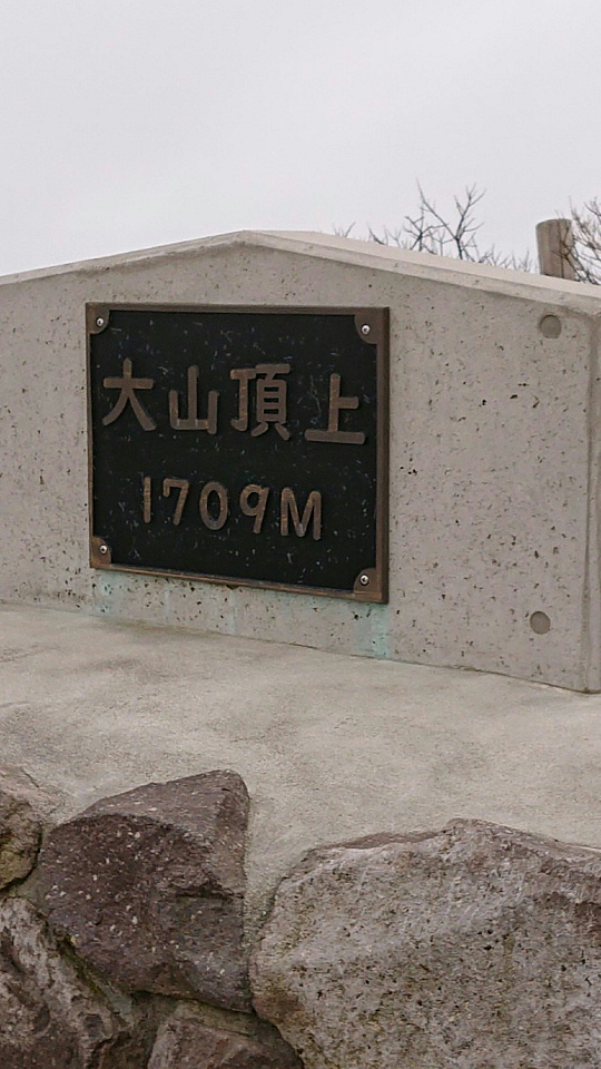 | 登山隊の同僚が送ってくれた大山山頂(弥山=みせん)の写真(UP了承済)。 無事に登頂できたのはいいけど、雲の中で下界はほとんど見えなかったとのことだった。 残念だったね。 |