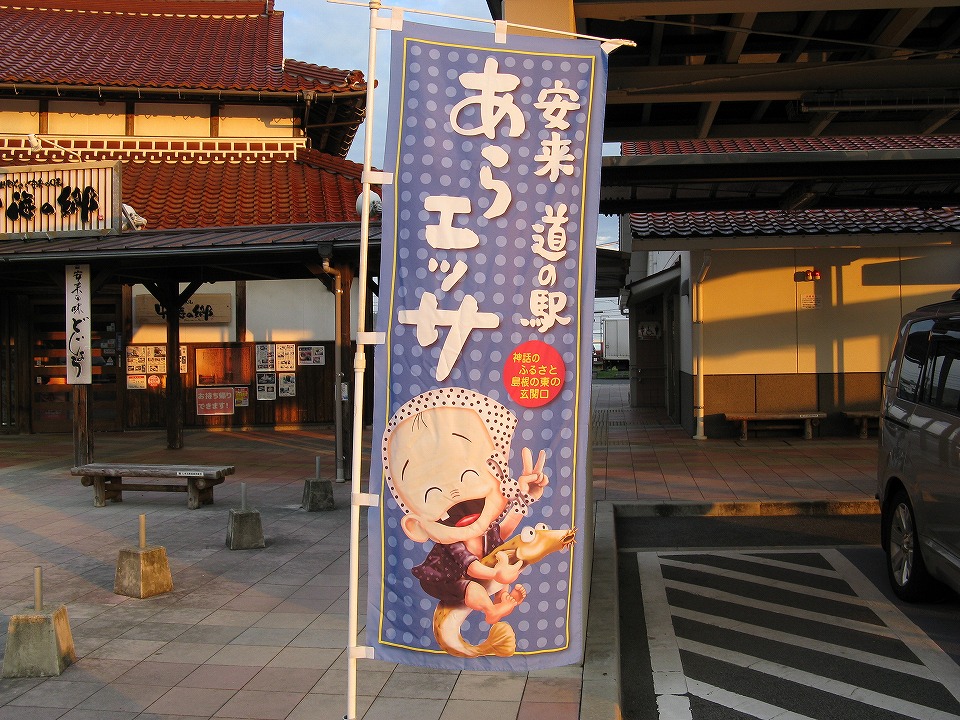 | 「サンライズ出雲」のシャワーでさっぱりして、米子に着いた。 クルマに戻り、「スーパーマルイ車尾店」で半額になっていた地物の刺身と「琴浦サーモン」を買い込み、 国道9号沿いの道の駅「あらエッサ」が今日の車宿場所だ。 さぁ呑むゾ~。 |