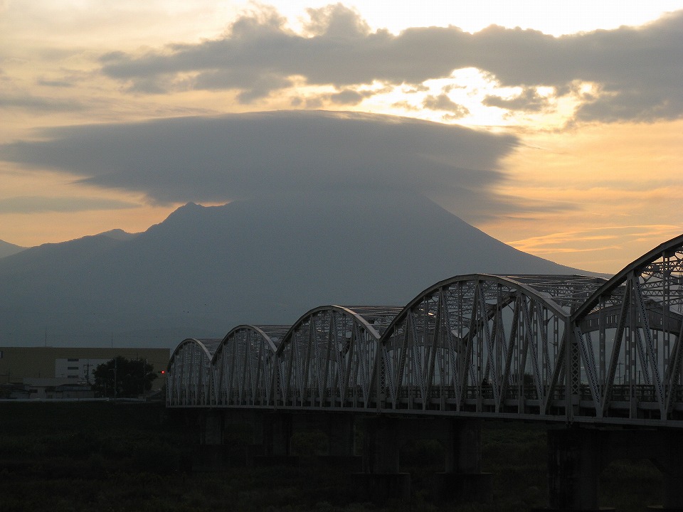| 大山には笠雲(といえるのかな)がかかっていた。 登山隊が登頂する頃には、雲が取れて下界が見えるといいね。 気を付けて登ってね~。 |