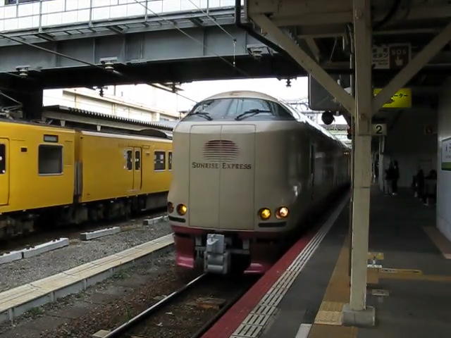 | そして130Dの約10分後には「サンライズ出雲」が来る。 後追いになるが、一応撮影しておく。 約21秒の動画はこちら。 |