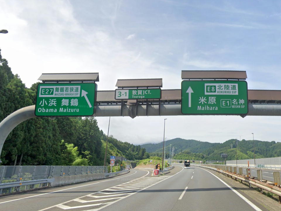 | 登山隊は、多分、信濃町インターから上信越道に乗るんだと思う。 俺は、ほんの少しケチって、いっつも1つ先の妙高高原インターから乗るけど。 そして、上越ジャンクションから北陸道に入り、福井県の敦賀までひた走る。 2023/11現在、北陸道は数か所で大規模なリニューアル工事をしてるから、夜でもちょっと渋滞するかも。 そして、敦賀に入ると、まず敦賀インターがあり、その先に敦賀ジャンクションがある。 ちなみに、敦賀が近付くと時々新幹線の高架をくぐるけど、来年3月16日(土)に金沢~敦賀が開業だよ。 |