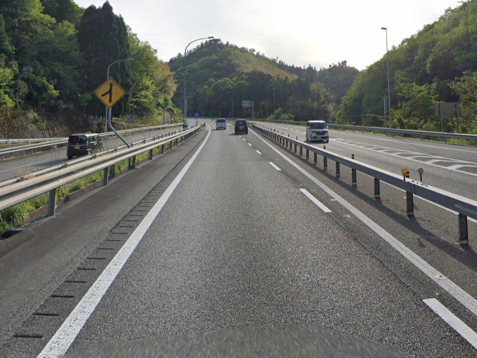 | 敦賀ジャンクション。 舞鶴若狭道(まいわかどう)に進むので、左にそれる。 舞若道は基本的には走りやすいんだけど、2車線だしトンネルも多いから運転は慎重にね。 |
