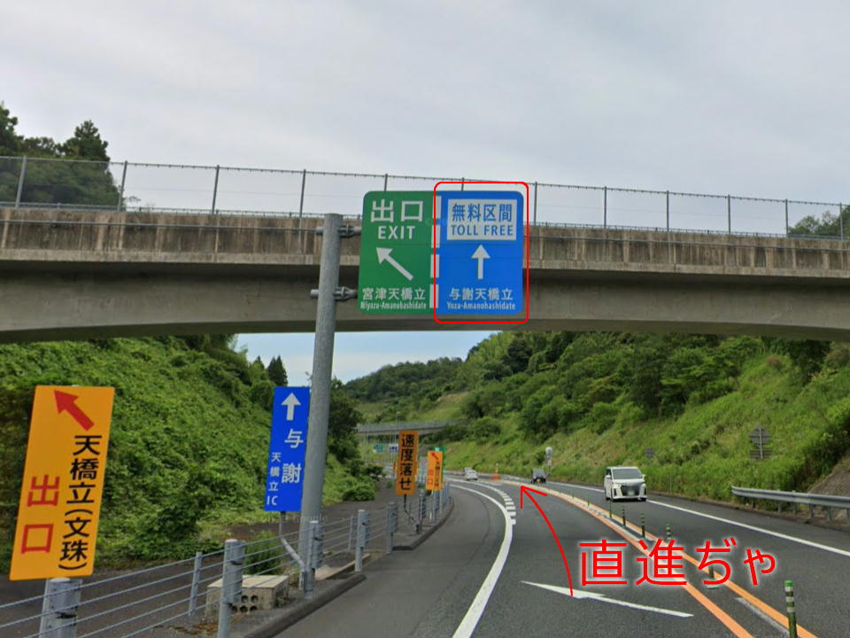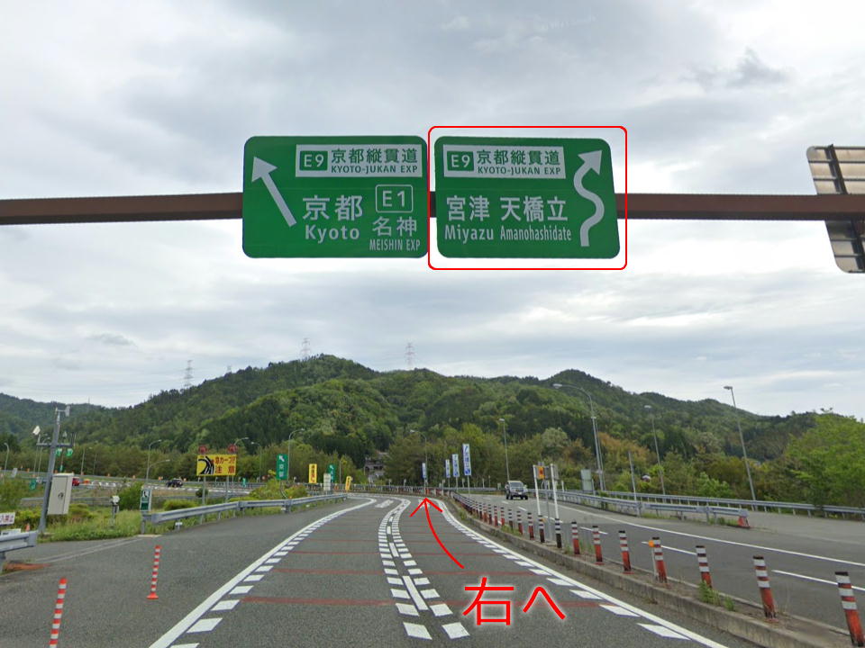 | そして、京都縦貫道の天橋立方面に進む。 ここ、間違えないようにね。 右車線を進むこと! |