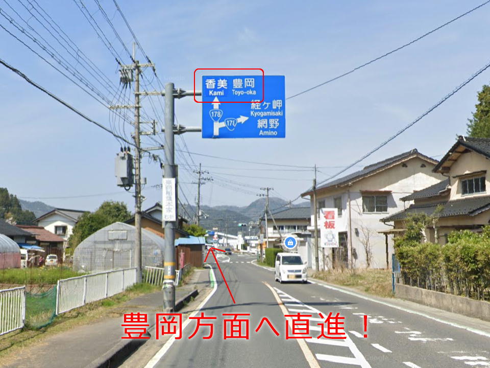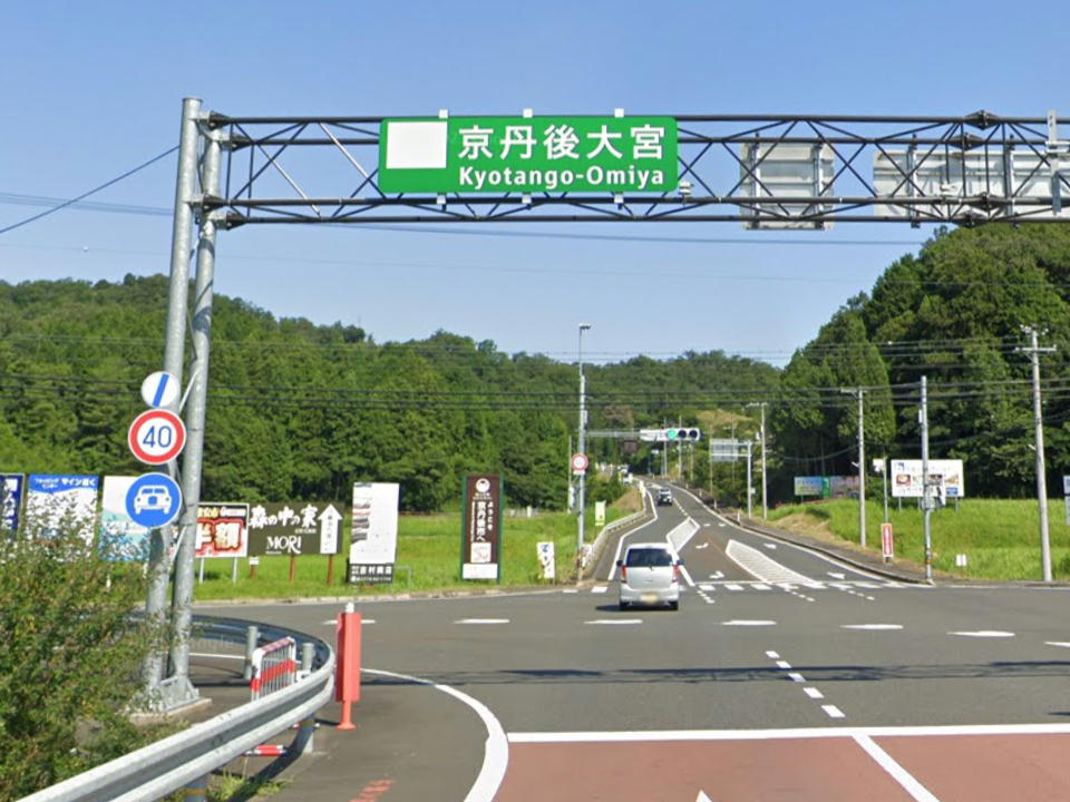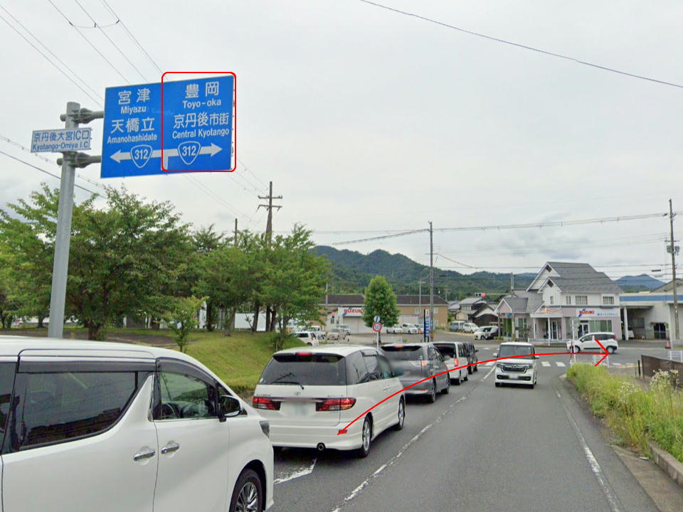 | 終点の京丹後大宮インターの出口(高速に乗ってきたとして)。 ここを直進する。 |
