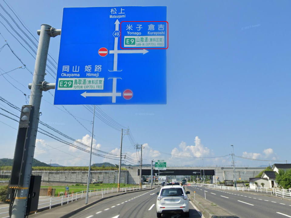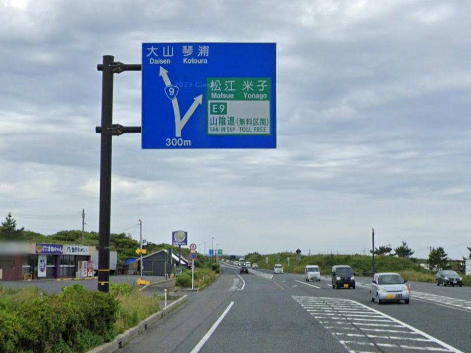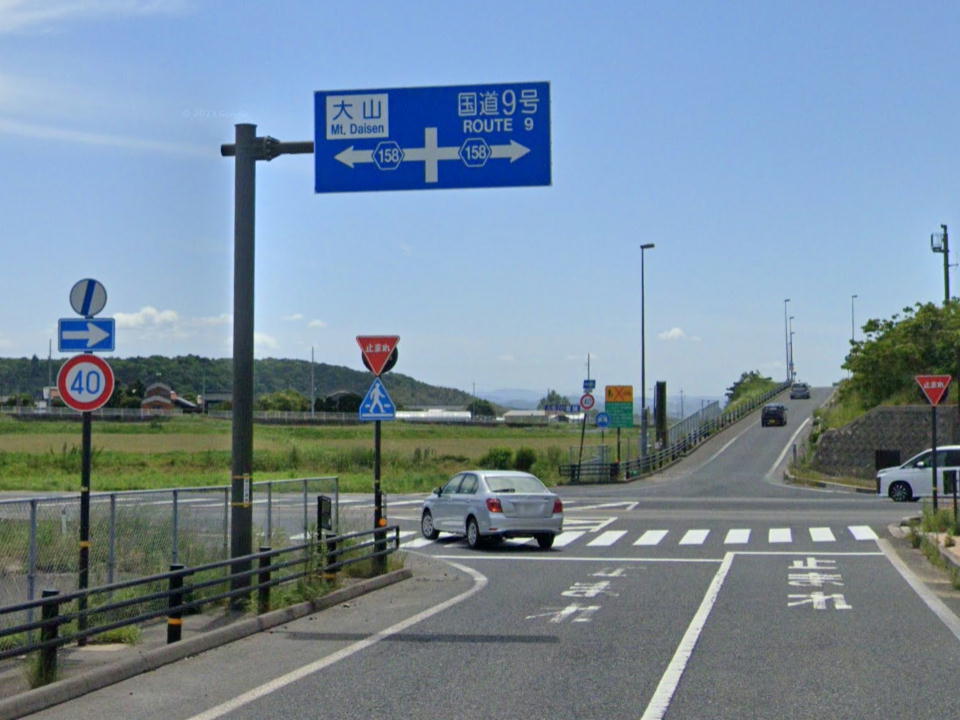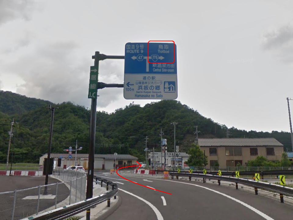 | 山陰道・米子方面に右折する。 高速の高架をくぐってから右折だよ。 |