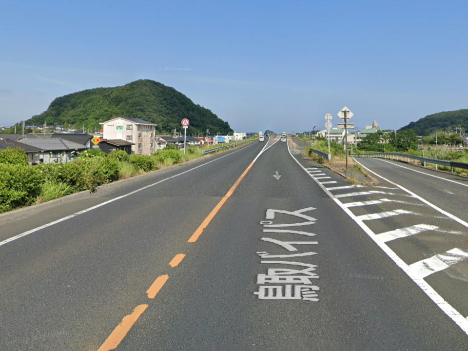 | 福部インターから先は一般の国道9号だ。 そのうち2車線になるので、左車線にいよう。 |
