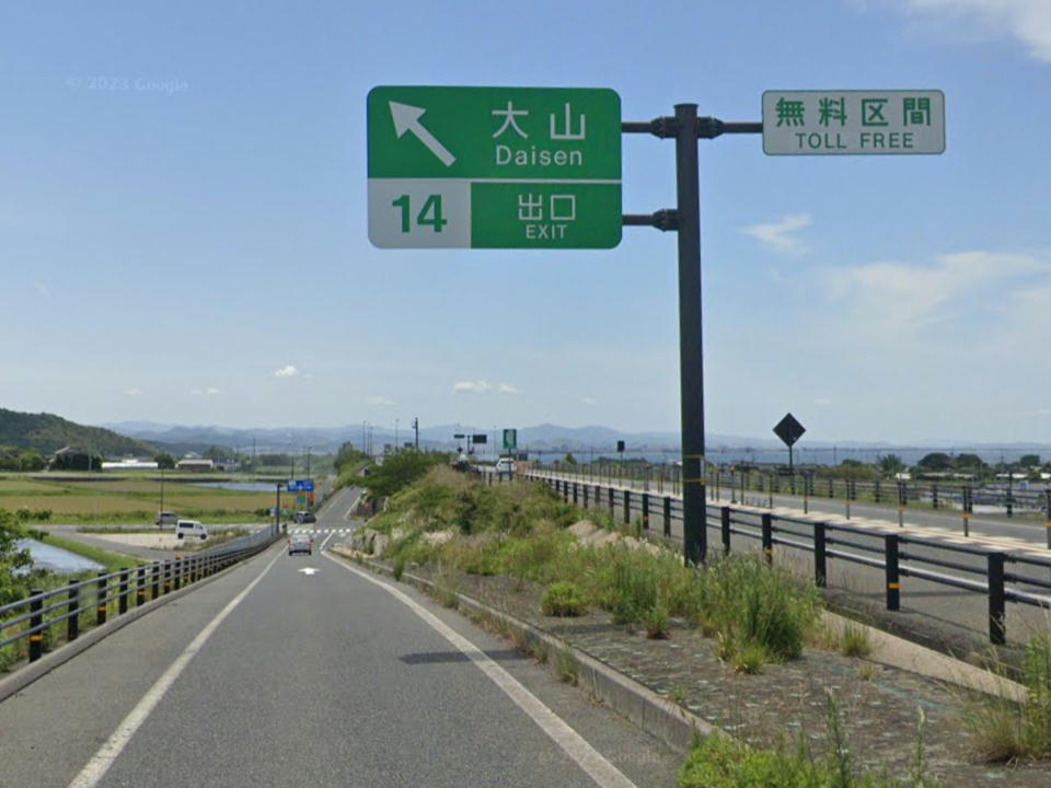 | だんだんと大山が近付いてくる。 赤碕中山インターの手前ではちょこっと大山がこんにちは。 |